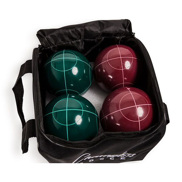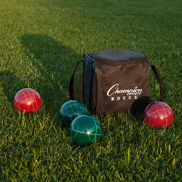 Whether you're holding an official tournament or enjoying playground fun, the Champion Sports Deluxe Bocce Tournament Set is sure to impress. It features a complete set of rules to help new players pick up the game, and nine balls that are made from a durable and lustrous phenolic resin that will roll smoothly across any surface. Once the scores are tallied, the bocce ball set packs away neatly into a durable and weather-resistant 1680 denier nylon bag, which is strong enough to toe the pieces around, game after game.